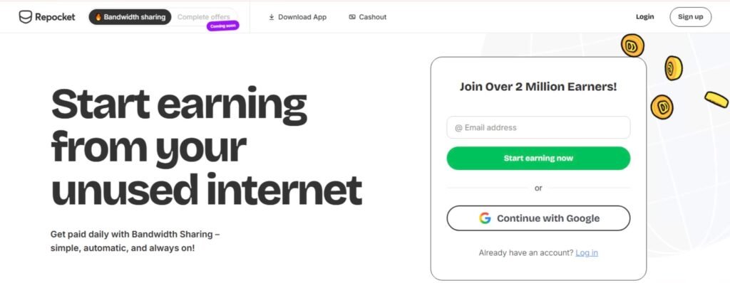 Repocket is in the same family of bandwidth-sharing tools and can be worth testing as a secondary option. The main thing I’d say is: don’t treat it like guaranteed income. Treat it like a “run it for a week and see” platform. If your earnings are decent and your connection stays smooth, keep it. If it’s slow or annoying, drop it.